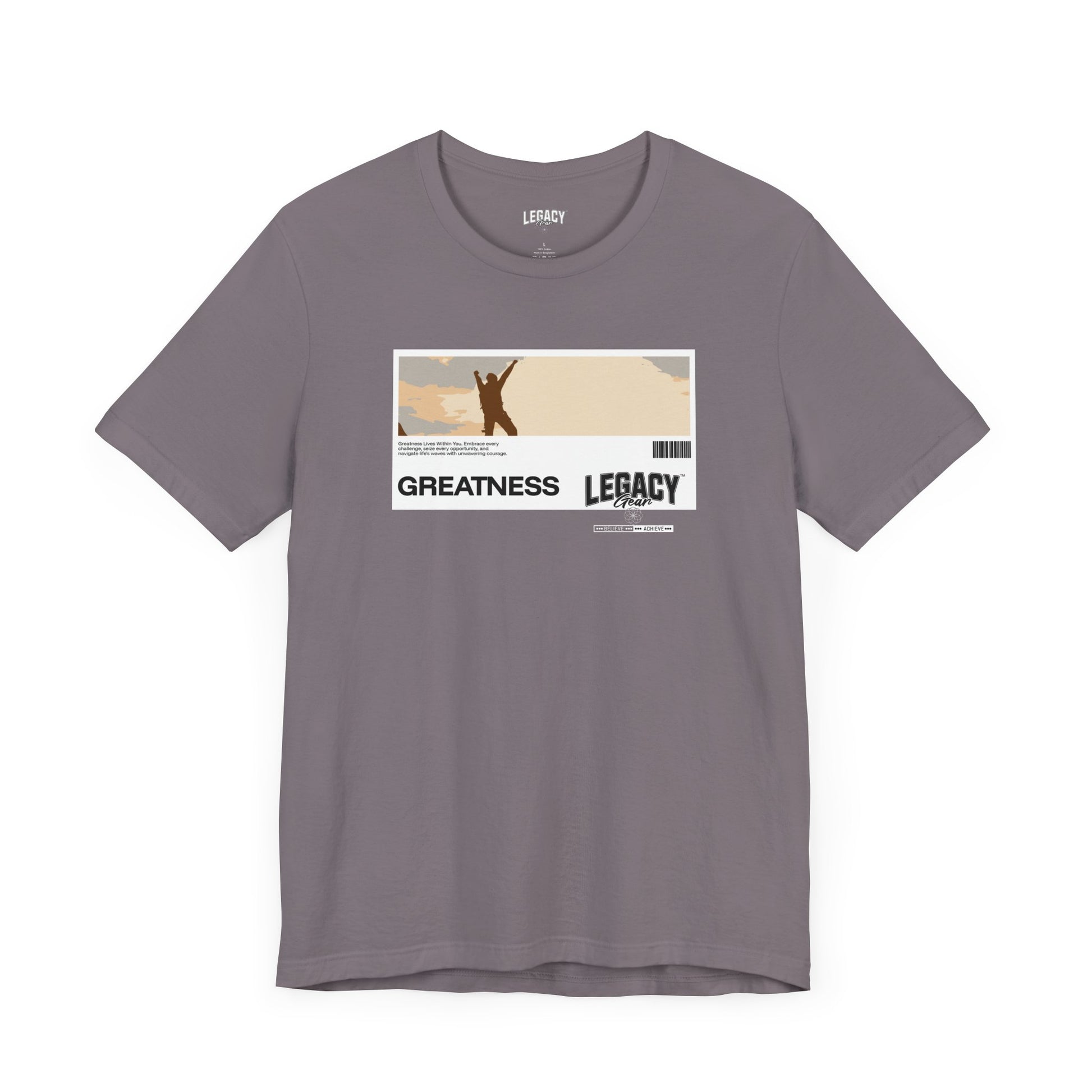 Celebrate your journey toward greatness with the Path to Greatness Tee by Legacy Gear. Featuring a striking silhouette of triumph against a serene backdrop, this design serves as a reminder to pursue your dreams and rise above challenges. The bold "Greatness" typography and Legacy Gear branding tie the message together, making this tee a powerful statement of ambition.